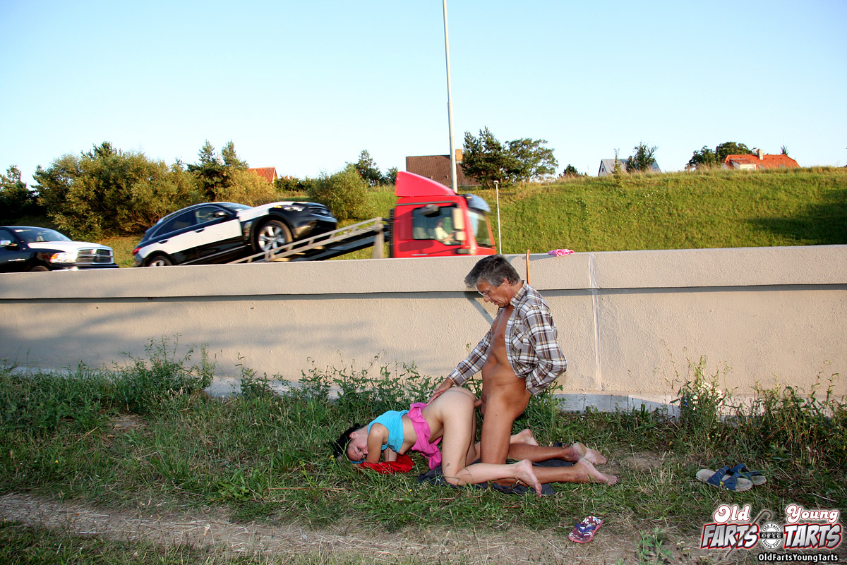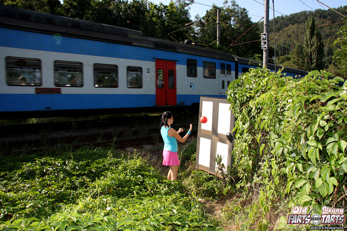 | Michaela is one of those careless girls who always seems to get herself in trouble. Just look at her, playing dangerously close to the railway track. Fortunately Donald is nearby to give her a warning, a spanking... and a good fuck!