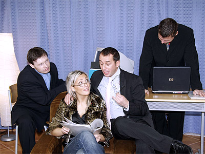 Another day at the office and a new job applicant. This hot blonde says she is fluent at German but when the boss asks her to read a German text she makes a total hash of it. Boss man is ready to kick her out of the office when she makes him an offer he can't refuse...
